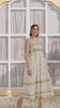- This flowing maxi dress features a smocked bodice for a flattering fit and tie-up shoulder ties for added charm.